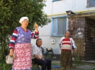 15.05. До гурту біля будинку №10 підходить 73-річна Марія Янкова в синьому халаті й червоному фартуху. Тримає вузлик. Повз проїжджає на скутері 55-річна Варвара Лисенко. У двох смугастих сумках видно порожні пластикові бутлі. Жінка їде за 3 км у Вітово по воду.