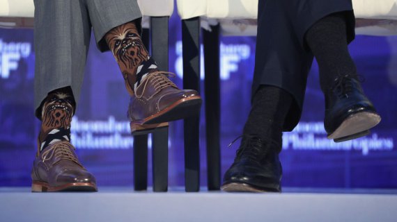 Канадский премьер-министр 45-летний Джастин Трюдо надел пару носков с героем фильма "Звездные войны" мохнатым человекообразным существом Чубаккой. В них появился на бизнес-форуме в Нью-Йорке. Носки изготовляют в Калифорнии. Стоят $20 — 570 грн.