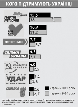 — В последние два месяца рейтинг Партии регионов застыл на месте, — рассказывает 64-летний Владимир Паниотто, гендиректор Киевского международного института социологии. — Но и теперешний уровень разочарования властью и новым президентом — не предел. Рейтинг может падать и дальше. Например, у президента Ющенко он скатился до 3 процентов.
