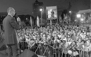 О программе Объединенной оппозиции по развитию села Арсений Яценюк рассказывает перед несколько тысячной толпой на пл. Свободы в Броварах Киевской области: