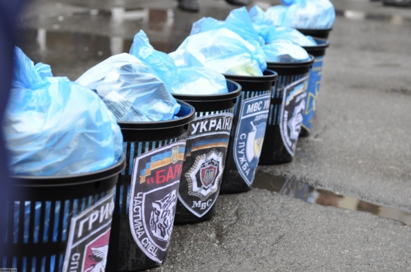 Пару десятков активистов провели под стенами Министерства внутренних дел в Киеве акцию по случаю Всеукраинского дня борьбы с полицейским произволом. Активисты принесли под МВД 7 ведер с мусором. На каждом из них была наклейка с различными структурами правоохранительных органов: "Беркут", "Барс", МВД, СБУ, ГАИ, "Грифон" и другие. Активисты также принесли плакаты с изображением столкновения с "беркутовцами" под Гостиным двором и надписью "Киевляне все видят, киевляне не простят". Также они держали плакаты "Даже собака - друг человека", "Каждому Захарченко по Запорожцу".