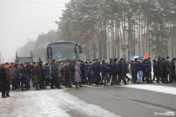С 10.00 до 11.00 члены трудового коллектива "Волыньторф" временно заблокировали движение транспорта на автодороге Р-14 (Луцк-Маневичи-Любешов-Дольск) и на трассе международного значения М-07 (Киев-Варшава). Трудовой коллектив требует вернуть их бывшего директора, которому по неизвестной причине Министерство не продлило контракт. Протестующие уверены, что смена руководства на предприятии приведет к его уничтожению и потере рабочих мест.