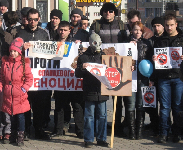 Около 300 жителей Донецка и области вышли на митинг против добычи сланцевого газа методом гидроразрыва пласта в Украине. Участники митинга уверены, что итогом добычи сланцевого газа не станет "газовая независимость Украины". В тоже время, добыча сланцевого газа методом гидроразрыва пласта, считают митингующие, приведет к "сокращению подачи воды населенным пунктам, сбросу в воду химических веществ, повышению радиационного фона, рост онкологических заболеваний, уничтожение лесов и плодородных земель".