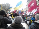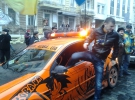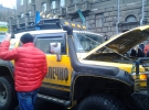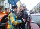 Двое девушек одной из машин вылезли в люк на крыше автомобиля и спели Гимн Украины. Скандировали: "Слава Украине! Смерть врагам!"