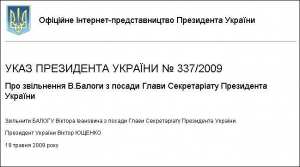 Главной причиной своей отставки с должности главы Секретариата президента Виктор Балога назвал свое категорическое несогласие с решением Виктора Ющенко во второй раз баллотироваться на должность президента.