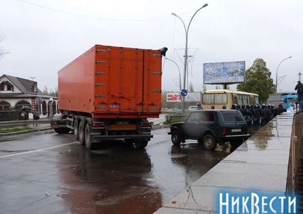 Как сообщают НикВести, "беркут" оцепил автобус, в котором по данным издания находятся протоколы комиссии. На улице идет дождь, но люди намерены стоять до конца.