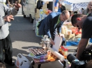 Вокруг столика собралось 15 человек. В основном - пенсионеры. Человек в сером свитере заваривает чай. Журналистам представляется как "украинский актер дон Педро".