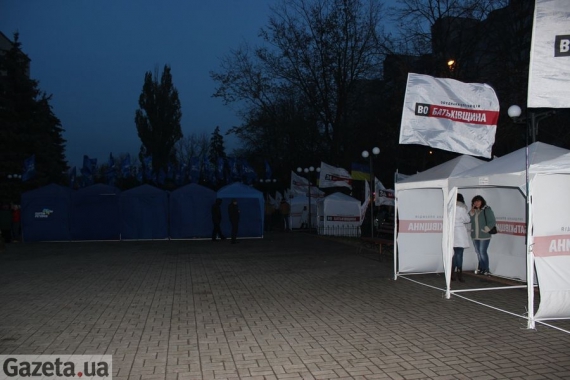 Под стенами ОИК до сих пор находятся около 590 сторонников оппозиции и Булатецкого, а также ребята в спортивных костюмах с флагами "регионалов".