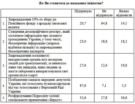 Вместе с тем, большинство граждан не поддерживают ряд инициатив, которые были озвучены парламентариями или уже воплощены в жизнь.