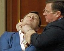 Напомним, что это уже не первая стычка между Мартынюком и Ляшко. Ранее первый вице-спикер уже хватал Ляшко за горло, перебрасывал через президиум и обещал "оторвать место, которое у него очень продуктивное".