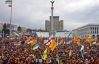 У глобуса, знак начала отсчета расстояния, собралось около 400 человек. Они держат государственные флаги и ВО "Батькивщины", Украинской народной партии, УПА, "Спільної справи", КУПР. Заявку на проведение митинга подала "Коалиция участников оранжевой революции".