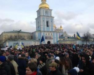 На Михайловской площади собрались уже около 10 тысяч людей. Протестующие заняли саму площадь, внутренний двор собора и улицу до Софийского собора.