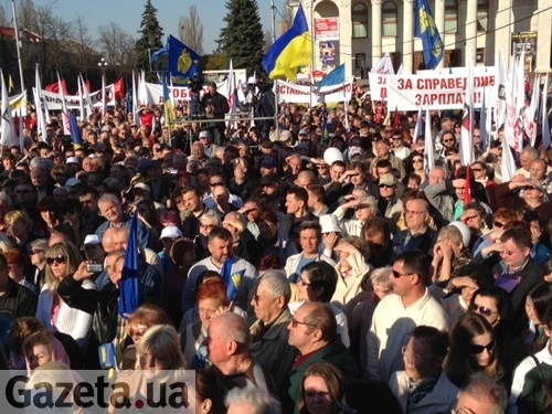 В Сумах прошел митинг оппозиции в рамках всеукраинской акции "Вставай, Украина!". На нем собрались более 8 тысяч человек. В митинге приняли участие лидеры оппозиции: председатель фракции "Батькивщина" Арсений Яценюк, фракции УДАР Виталий Кличко и ВО "Свобода" Олег Тягнибок, народные депутаты от оппозиции.