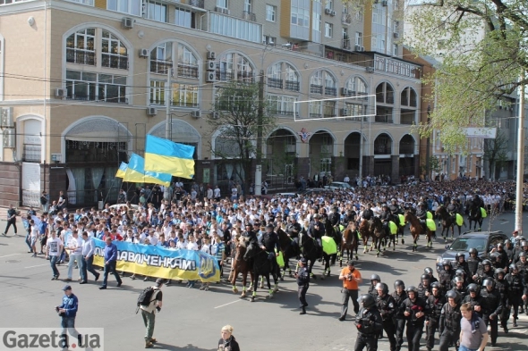 Мероприятие началось с короткого митинга в парке имени Шевченко. Большую часть участников составляли фанаты киевского футбольного клуба "Динамо" и Сичеславского "Днепра". Выстроившись в колонну, активисты двинулись по улицам. Они держали в руках плакаты: "Свободу Павличенко!", "Мы - будущее, которое вы сажаете!", "Свободу честным!" и другие. Идя по городу люди скандировали: "Сегодня Павличенко, завтра ты!", "Судьи, помните - власть не вечна!", "Нет полицейскому государству!" и тому подобное.