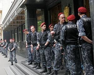 Под стенами дворца Украина проходит акция партии За Украину, однако их оттесняет подразделение Беркут.
