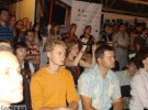 Мероприятие начинается с показа фильма о развитии независимого медиа в Украине. Качество нечеткое, но все внимательно следят за экраном.