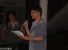 Еще один участник "hromadske.tv" Мустафа Найем занимает место в зале. В помещении достаточно темно. Слышно комментарии иностранцев, которые пришли поддержать проект.
