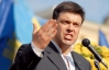 Активисты партии "Свобода" держат плакат с надписью:"Зек - марионетка кремлевских карликов", "долой русский империализм", "Украина принадлежит украинцам" и др.