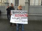 Люди держат в руках плакаты с надписями: "Морды госчинов не влезают в экран и народ не видит кого "благодарить" за "счастливое" осовременивание", "Выносим "козлов" быстро, качественно. Ваши циничные бандеровцы".