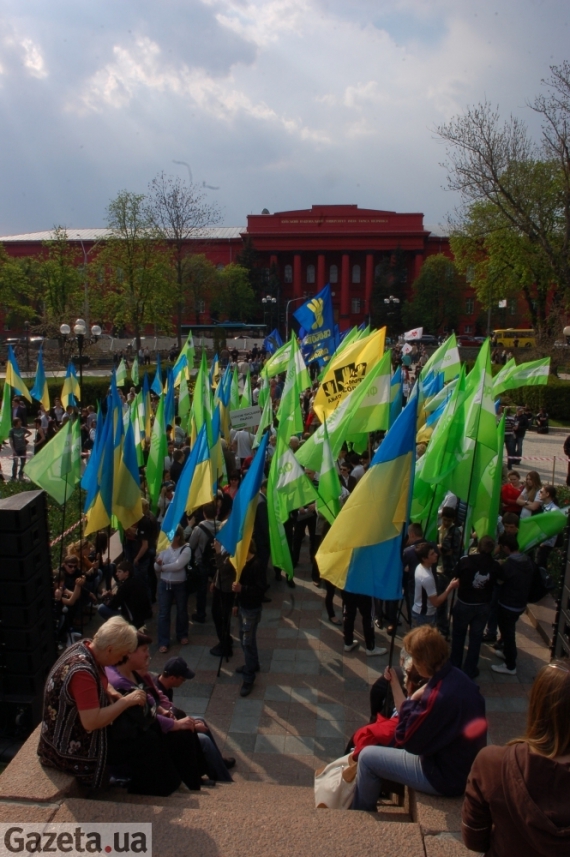Возле памятника Шевченко началось вече оппозиционных партий.