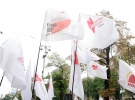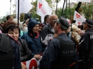 У здания суда, в центре Киева, люди начали собираться с самого утра. Всего пришло около 200 сторонников экс-премьера. Они держали флаги "Батькивщины" и "Нового Киева".