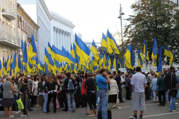 Президент Виктор Янукович принял участие в церемонии поднятия государственного флага Украины. Церемония прошла в Администрации президента. Была назначена на 10.00. Территорию возле Администрации проверили кинологи с собаками, женщины в синей форме вениками подмели красные дорожки под зданием. Президент вышел из Администрации в 10.10, поздравил роту Почетного караула. На лацкане его пиджака желто-голубая лента.