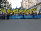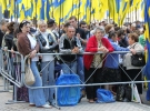 В это время перед воротами прошел митинг. Около тысячи участников держали государственные флаги и транспаранты "Молодь вітає президента Віктора Януковича" и "Разом - ми Україна". На вопрос, кто организовал этот митинг, говорили: "А я знаю? Люди сюда шли, я с ними". Участники митинга говорят, что пришли поддержать Виктора Януковича.