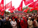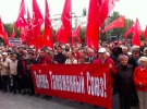 Люди пришли с флагами Коммунистической партии, а также транспарантами: "Украина - таможенный союз!", "Референдум - право народа решать судьбу страны", "Долой авторов социального фашизма!", "Народ! Очнись от спячки! Защити себя!", "Посеял ветер - бурю пожнешь! Даешь референдум!".