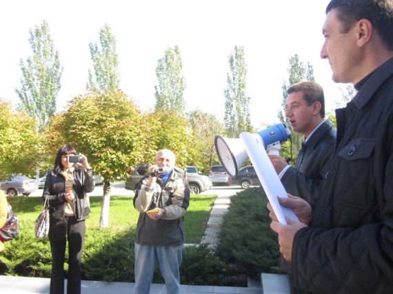 - Денег нет потому, что украдены нынешней властью, - заявил на митинге глава Горловской "Батькивщины" Денис Токарь.