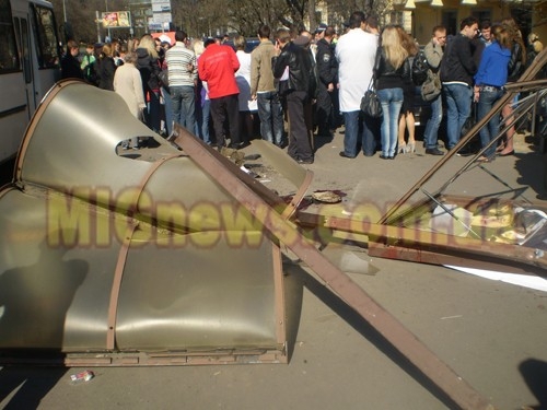 В Киеве на улице Мечникова легковой автомобиль выехал на остановку общественного транспорта. Вследствие аварии пострадали два человека.