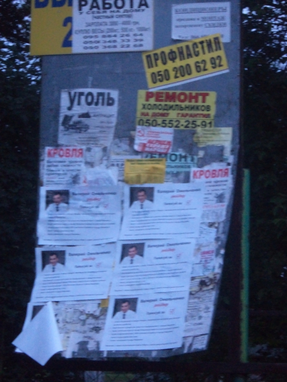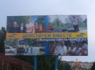 Надписи "Рейдер" красной краской появились на бигбордах, на которых размещена имиджевая реклама возможного кандидата в народные депутаты по мажоритарному округу в Макеевке Валерия Омельченко.