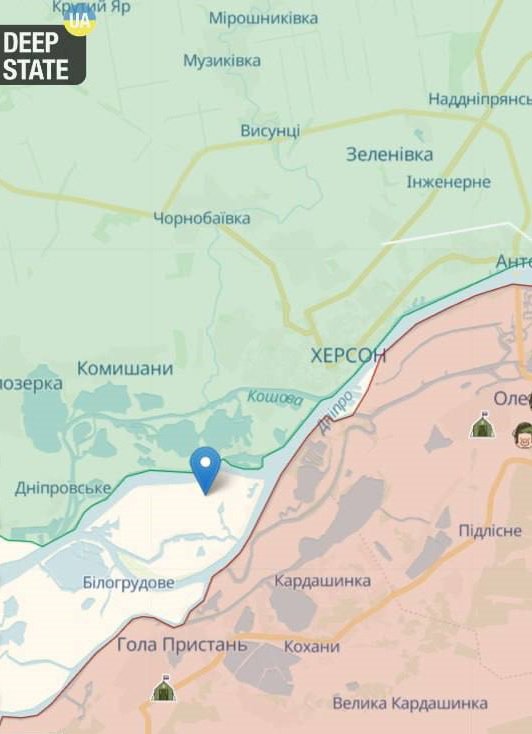 "ВСУ освободили остров Большой Потёмкинский! Это остров между левым и правым берегом Днепра возле Херсона. Слава нашим великим воинам!" – написал Гончаренко.