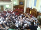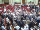 Оппозиционеры стояли посреди зала, чтобы не допустить разблокирования "регионалами" трибуны ВР.