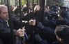 Возле первого подъезда, куда обычно заходит пресса, дежурят 30 "беркутовцев". Рядом припаркованы 4 милицейские автобусы.