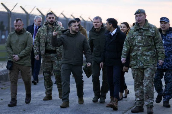 Президент Владимир Зеленский и премьер-министр Великобритании Риши Сунак посетили украинских военных, проходящих обучение на танках Challenger 2.