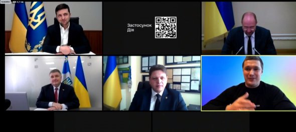 Также на экране были премьер Денис Шмыгаль и руководитель МВД Арсен Аваков.