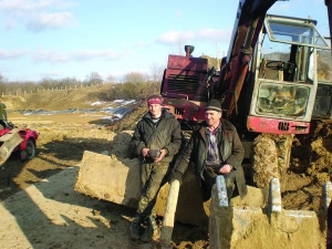 — Проволока нужна, чтобы бумажки, пакеты не разносил ветер, — объясняет экскаваторщик 52-летний Виктор Ярошенко. — Делаем свалку по новейшим технологиям, чтобы не вредила природе. Мертвый скот будут сбрасывать в термическую яму. Котлован для жидких отходов забетонирован. Над ним работаем с октября, на его месте раньше гора была.