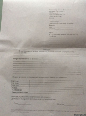 Об этом сообщает "Крим.Реалии". Пассажирам, которые не смогли выехать, вручают бланки заявлений, которые они должны написать на имя начальника Северо-Кавказского филиала Федеральной пассажирской компании в Ростове-на Дону. Заявитель должен указать причину возврата билета и номер счета для перечисления средств.
