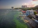 Черное море в Одессе резко позеленело. Явление особенно выражено в полузакрытых акваториях пляжей, отделенных от открытого моря волнорезом.