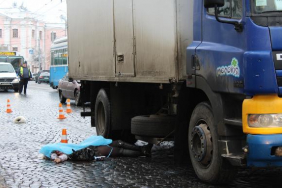 17 ноября в Виннице грузовик с молочной продукцией насмерть сбил девушку. Она выходила из трамвая на ул. Соборной.