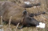 "Двое зубров-самцов неделю назад отбились от стада. Один вернулся в парк, другой - пошел через горы в село искать корм. Через снегопады дорогу обратно в парк замело. Он не может вернуться", - говорит заместитель директора парка "Сколивские Бескиды" Василий Приндак.