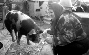 — Сын подарил ей поросенка, так он в росте уже перегнал наших. Совсем не растут. Я купила сухой корм "Живину" за 14 гривен. Два раза в день подмешиваю его в кашу с тертой свеклой и вареной картошкой. Доливаю немного теплой воды. Результата пока что мало, разве что свиньи более ловкие стали, хвосты закрутились. И аппетит ничего себе — все из корыта выедают.