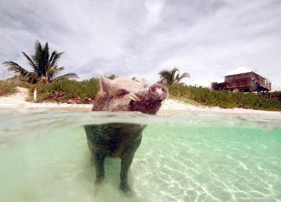 На маленьком острове на Багамах живет 12-летний кабан по имени Малыш. Его приручили двое местных жителей: видеооператор Люк и его девушка Мона.