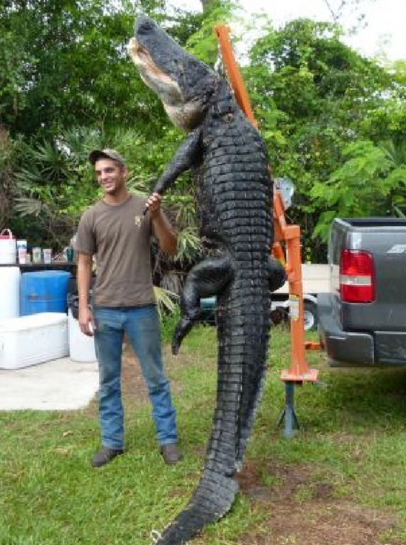 Отец Тима говорит, что это - самый большой аллигатор, который он только видел с тех пор, как начал охоту на акул и крокодилов в 1989 году.