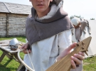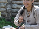 Реконструкторы развлекают туристов в деревянной имитации княжеской усадьбы IX-XI века. 23-летний Виталий Щепанский играет на козе - музыкальном инструменте, напоминающем скрипку с тремя струнами.