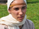 "Эта одежда сшита исключительно из натуральных тканей. Платье окрашено мареной, чтобы имело нежно-розовый оттенок. На мне повседневный наряд жены богатого древнерусского воина, - рассказывает 19-летняя Юлия из ровенского клуба исторической реконструкции "Лодь". - На состоятельность указывают шесть серебряных колец, нашитых на кожаный головной обруч. Простые женщины носили медные украшения."