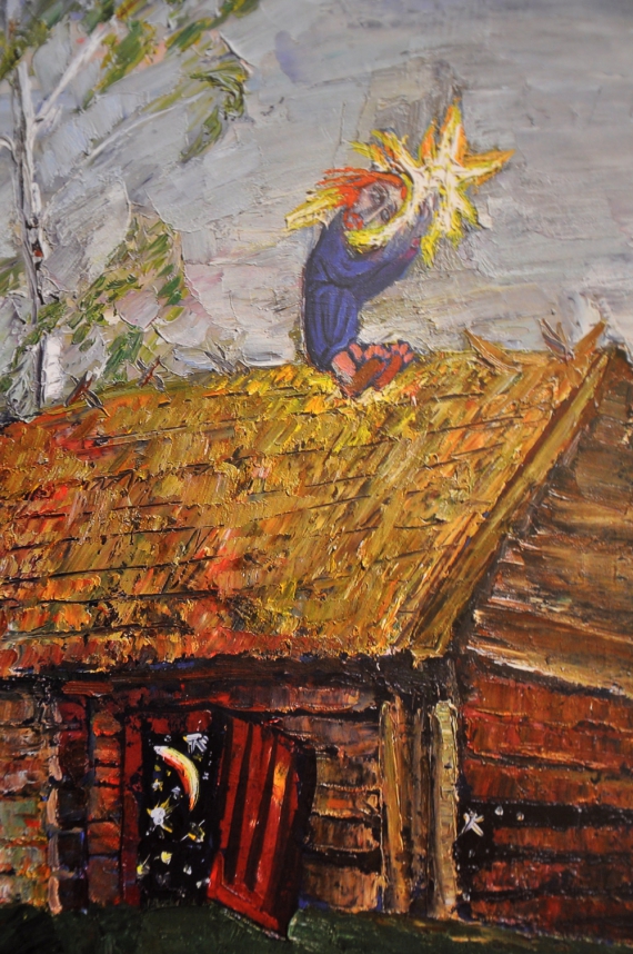 К каждой картине подобрана подпись в чисто полесском настроение - шутки, небылицы, строки из песен, поговорок и легенд.