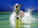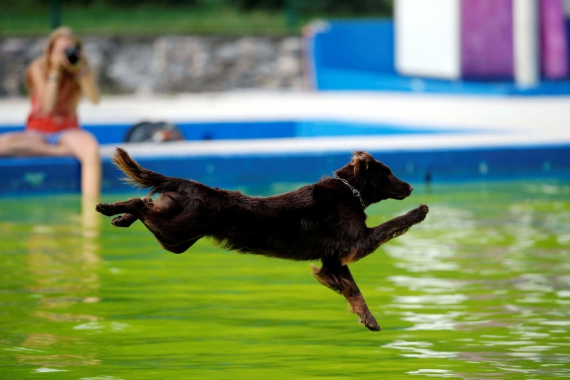 Летающие собаки попали в фотообъективы в Словении. Там проходит конкурс прыжков-полетов собак над водоемов.