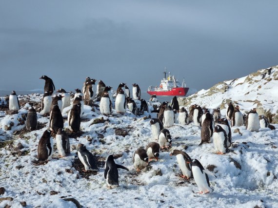 В связи с потеплением в нашем районе западного побережья Антарктического полуострова субантарктические пингвины хлынули на юг. Первые их гнезда появились в 2007 году на мысе Марина-Пойнт возле станции.