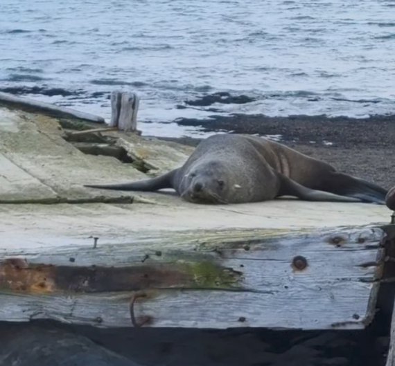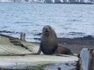 Украинские полярники встретили на острове Десепшен морского котика, который отдыхал на деревянной лодке.